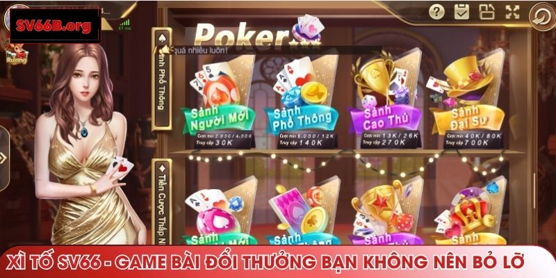 Xì Tố SV66 là game bài đổi thưởng hấp dẫn, nơi hội viên đấu trí căng thẳng, thể hiện bản lĩnh, tâm lý và chiến thuật. Hội viên cần quan sát liên tục, phán đoán và đưa ra quyết định phù hợp trong từng ván cược. Để nắm rõ hơn về siêu phẩm này bạn hãy khám phá ngay qua bài viết bên dưới và áp dụng kinh nghiệm thắng lớn tại SV66.